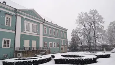 Původně renesanční zámek postavený na konci 16. století pro rod Krajířů z Krajku získal dnešní podobu během klasicistní přestavby ve 30. letech 19. století. O jeho nynější tvář se zasloužil zejména porýnský rod říšských svobodných pánů Dalbergů, který na začátku 19. století zvolil zámek za své reprezentační sídlo. Jednotliví členové rodu zde postupně shromažďovali cenné umělecké, přírodovědné či etnografické sbírky a také rozsáhlou rodovou knihovnu. Prohlídková trasa, která v minulém desetiletí prošla náročnou obnovou, autenticky zachycuje život šlechty v průběhu 19. a na počátku 20. století.